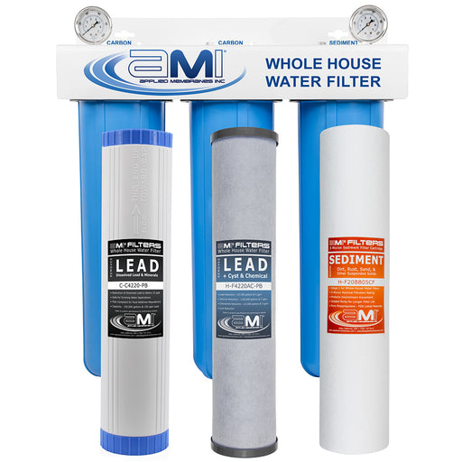Applied Membranes whole house water filters have earned the reputation of consistent quality, reliability, and performance since 1983. Our Point of Entry Water filtration systems remove hundreds of contaminants commonly found in US Tap Water, including: Lead, Chlorine, Chloramine, Bad Flavors and Odors, Chemical Contaminants, Sediment, Dirt, Rust, Color, and Cloudiness. Our Whole House Water Filters online catalog also includes water filters specially designed to remove lead, iron, manganese, heavy metal toxins, hardness, cysts and other water quality concerns – to ensure you and your family have clean, safe water for drinking, cooking, and bathing.