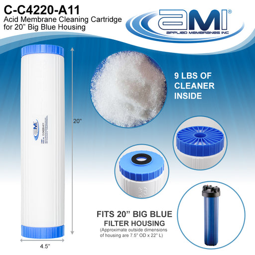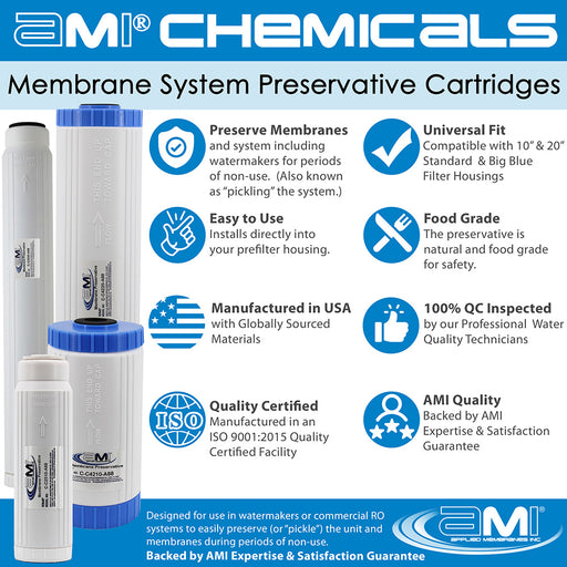 View full detailsRO Membrane Cleaning Chemical Cartridges for Installation in 20" Standard Prefilter HousingAM-11 Acid Cleaner for Scale Removal Model Number: ...