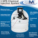AMI A540L-220-3GPD Chemical Injection System will inject up to 3 Gallons Per Day of accurate metered chemical injection into a water stream. Ideal for antiscalant injection for commercial RO pretreatment, and typically used in systems with feed flow rates between 5 gpm to 50 gpm, depending on the chemical concentration required. AMI 3GPD Chemical Injection System has Tank Level Float Installed for Automatic OperationThe complete chemical injection assembly is equipped with everything needed for automatic operation including an adjustable metering pump, polyethylene chemical tank, suction and discharge lines & fittings, and a level switch to monitor the level of chemical in the tank and automatically shut-down the system when it reaches the pre-set point. This chemical metering pump includes a detachable motor, feed rate control and pump head featuring a 3-point roller design acts as check valve to prevent back flow or loss of prime. The polyethylene construction is both lightweight and rugged. The tank has incremental solution level indicators and is equipped with a child-resistant lid. The pumps are vertically mounted over the tank containment basin. This system comes pre-assembled for quick and easy installation. The adjustable metering pump has 11 different levels ranging from 0.2 to 3 gallons of chemicals dosed per day. AMI Chemical Injection Systems are in our ISO 9001:2015 Certified Facility and are 100% Quality and Performance Tested. AMI 3GPD Chemical Injection System Dosing Settings