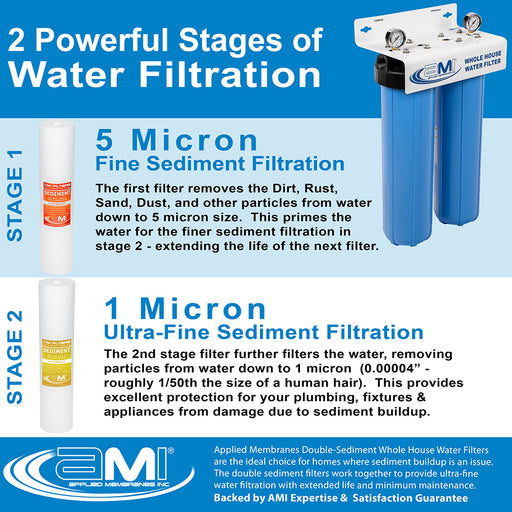 View full detailsWhole House Water Filter System | 20" Big Blue Two-Stage Sediment Filters - for Fine Sediment Filtration & Sediment ControlIdeal for Homes Wh...