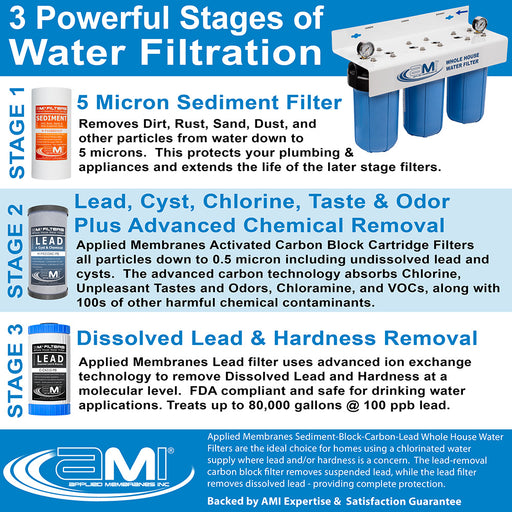 View full detailsWhole House Water Filter System | 20" Big Blue Three-Stage Lead Water Filter with Carbon and Sediment Filters to Reduce Lead, Cysts, Sediment, Ch...