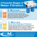 1 Micron Ultra-Fine Sediment FiltrationThe 2nd stage filter further filters the water, removing particles from teh water down to 1 micron (0.00004" - roughly 1/50th the size of a human hair). This provides excellent protection for your plumbing, fixtures, and appliances from damage due to sediment buildup. |